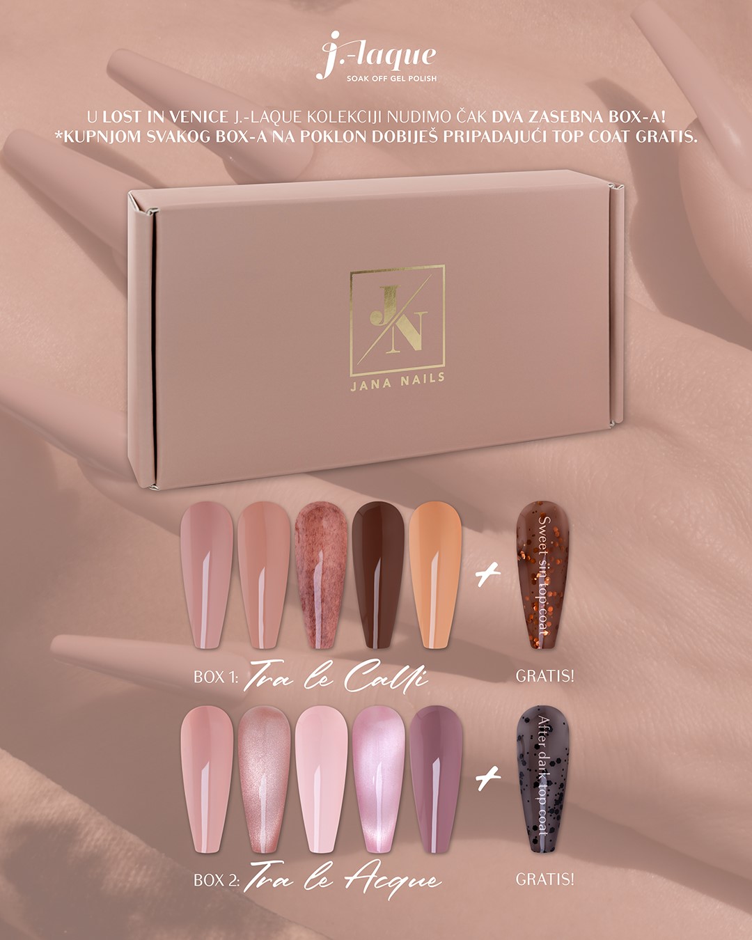 Moja priča počinje u maloj studentskoj sobi. Izrada noktiju, tada je bila tek hobi. Iz čiste ljubavi, bez velikih planova, stvarala sam mali svijet boja i oblika. Tada sam prvi put čula za Janu – ime koje je, sinonim za kvalitet i profesionalnost. Njen rad me očarao, ali i podstakao na razmišljanje: da li moj hobi može postati životni poziv? Prva edukacija kod Jane bila je prekretnica. Tada sam znala – želim na naše tržište donijeti brend koji će svima, koji se bave ovim poslom, pružiti sve što im je potrebno da rastu i napreduju. Počeli su pregovori, a samim tim, i ovo putovanje.