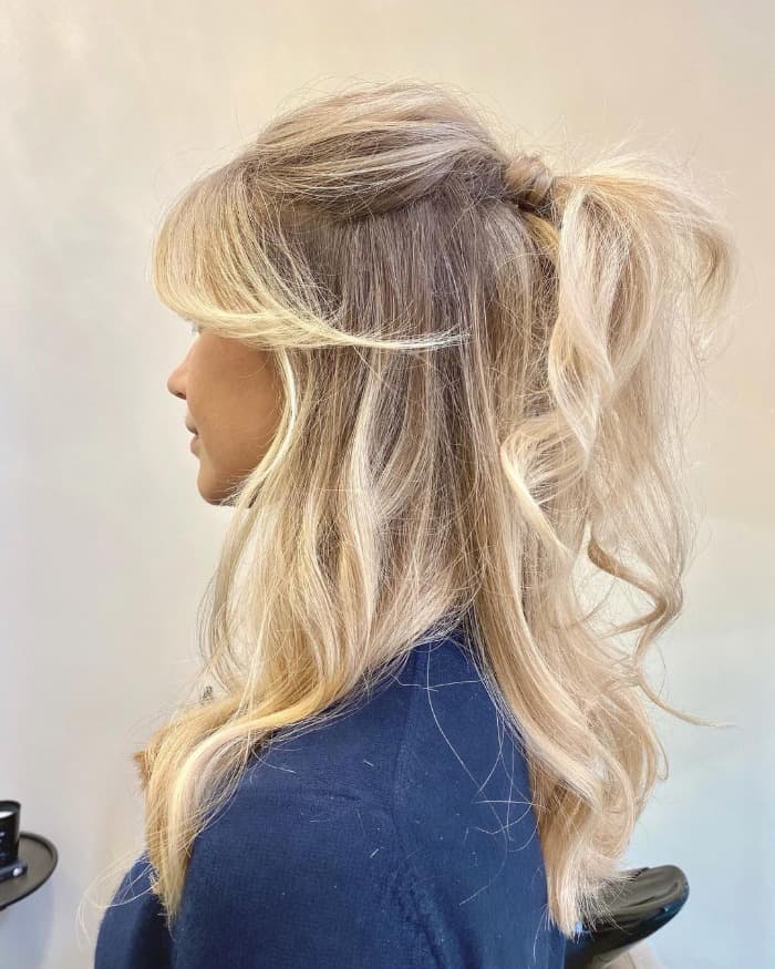 Uparite duge šiške na stranu s trendi polu dignutom frizurom.