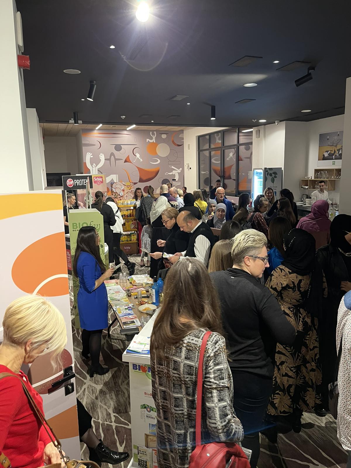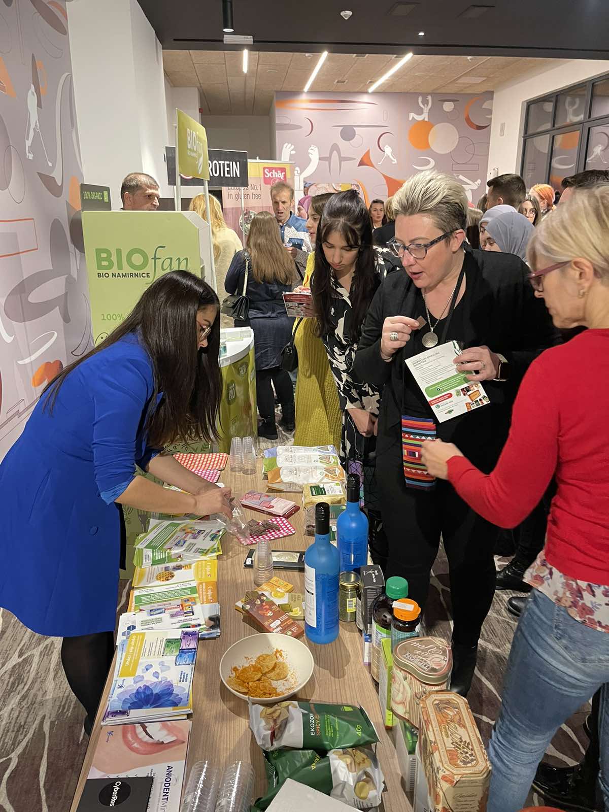 Nakon prvog bloka predavanja, svi učesnici su imali pauzu od 30minuta gdje su sa kompanijama koje su bile dio projekta razgovarali, razmjenjivali mišljenja i iskustva, te svakako imali priliku probati njihove izložbene proizvode. Svi proizvodi služe u očuvanju zdravlja, bez glutena su i tvari koje štete našem organizmu.